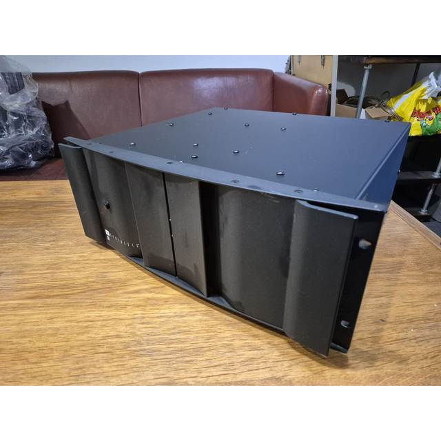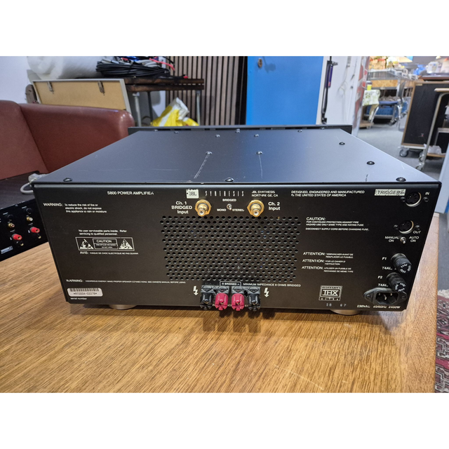 JBL Synthesis S800 er en kraftfuld 2-kanals effektforstærker designet til high-end hjemmekino og hi-fi-systemer. Den leverer 200 W pr. kanal i stereo ved 8 Ω og kan i brokoblet mono-mode yde op til 800 W ved 8 Ω, hvilket giver rig effekt til selv krævende højttalere. Frekvensgang strækker sig bredt fra 5 Hz til 100 kHz, og den har meget lav total harmonisk forvrængning (< 0.03 % i 20 Hz-20 kHz). Amp’en har høj signal-til-støj-ratio (≥ 100 dB), dæmpningsfaktor ≥ 400, og input-impedans ca. 28 kΩ med justerbar følsomhed (1 V for 100 W, 1.4 V for 200 W). Den er udstyret med termisk styret køleventilator og isolerede beskyttelseskredsløb for stabil drift. Mål er ca. 484 × 178 × 444 mm og vægt omkring 32 kg.