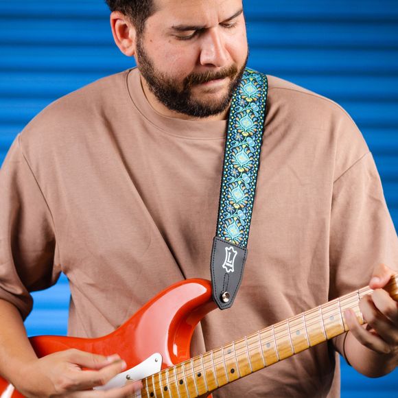 Denne 2,5” brede rem til enten guitar eller bas er en af de mere iøjnefaldende remme fra Levy's populære og store sortiment af remme. Den er håndlavet på deres fabrik i Nova Scotia i Canada, og kvaliteten er helt i top.
